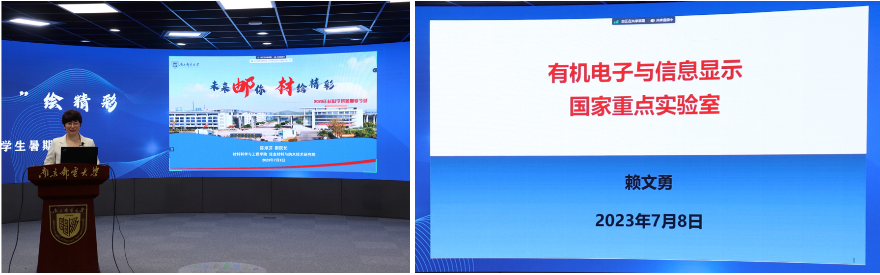 8日上午举行了隆重的夏令营开营典礼。麻豆传媒 副院长陈淑芬教授首先代表学院对入选营员的到来表示热烈欢迎,并向大家介绍了本次夏令营的日程安排;随后,以“未来‘邮’你,‘材’绘精彩”为题,从师资队伍、研究成果、学科平台、合作交流、就业升学以及招生报考等方面全方位细致地介绍了学院近年来的整体情况,殷切希望全体营员能够加盟南邮,在材料学院绘制精彩的人生。紧接着播放了精心准备的学院实验平台视频,向大家展示了学院良好的科研环境和实验条件。有机电子与信息显示国家重点实验室常务副主任赖文勇教授向营员们介绍了重点实验室的发展历程和建设情况等。