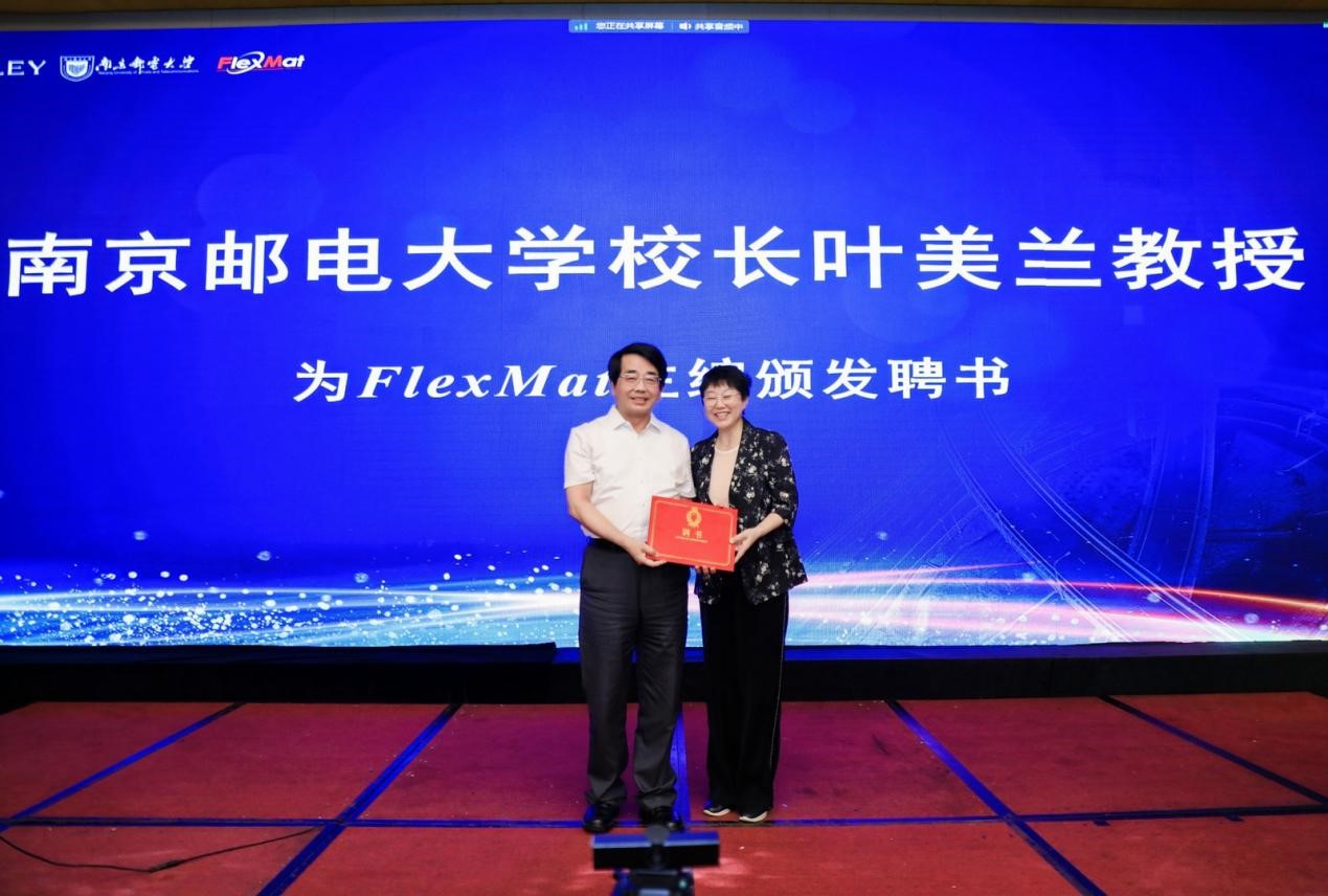 麻豆传媒 校长叶美兰教授为FlexMat主编黄维院士颁发聘书。