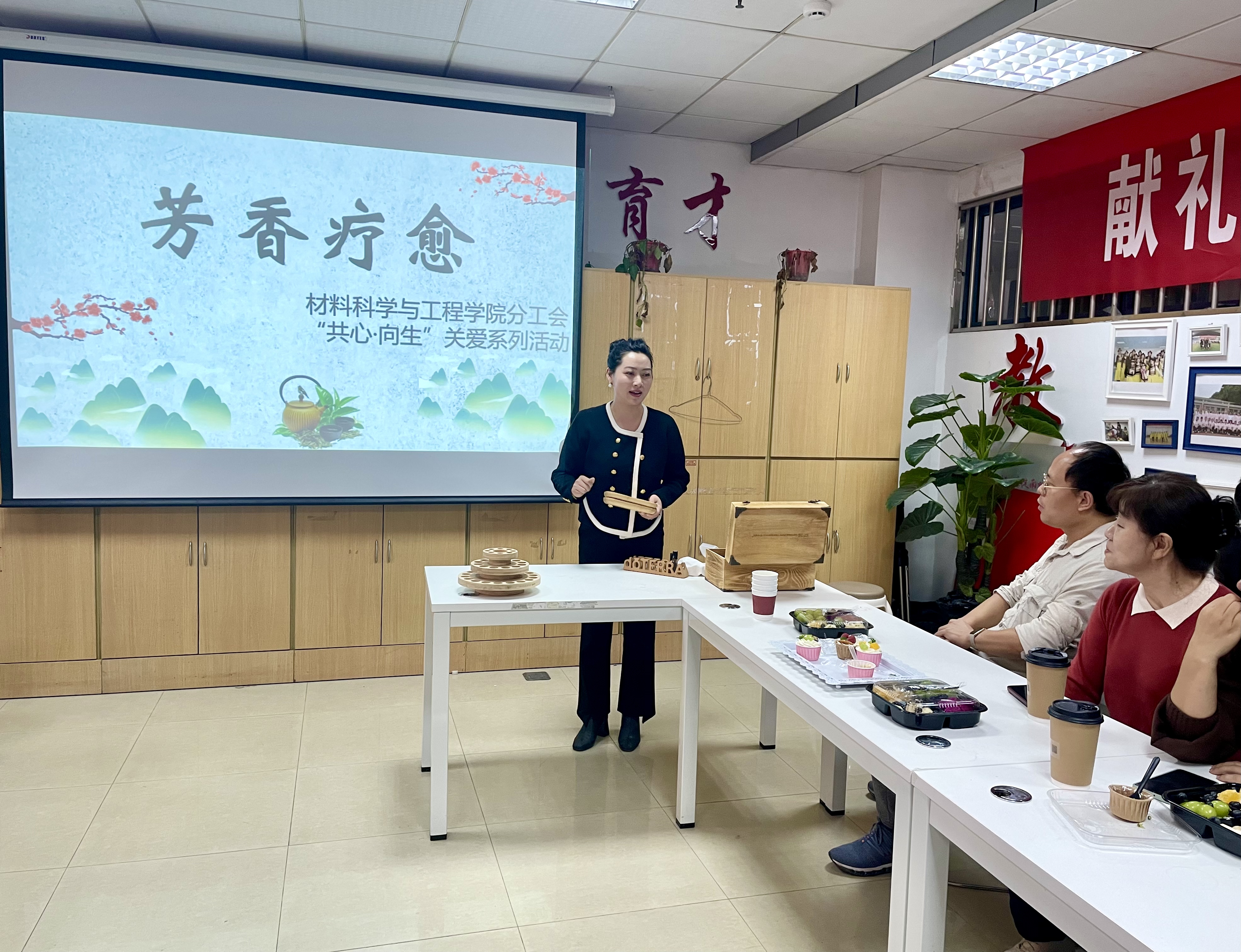 为了关爱教职工的身心健康,加强对他们的关心和关怀,也帮助青年教师适应紧张而繁忙的科研教学生活,材料学院分工会于11月8日下午在教五101会议室举办了以“向心·共生”为主题的芳香心理舒缓沙龙活动。此次活动吸引了20余位教职工的参与。