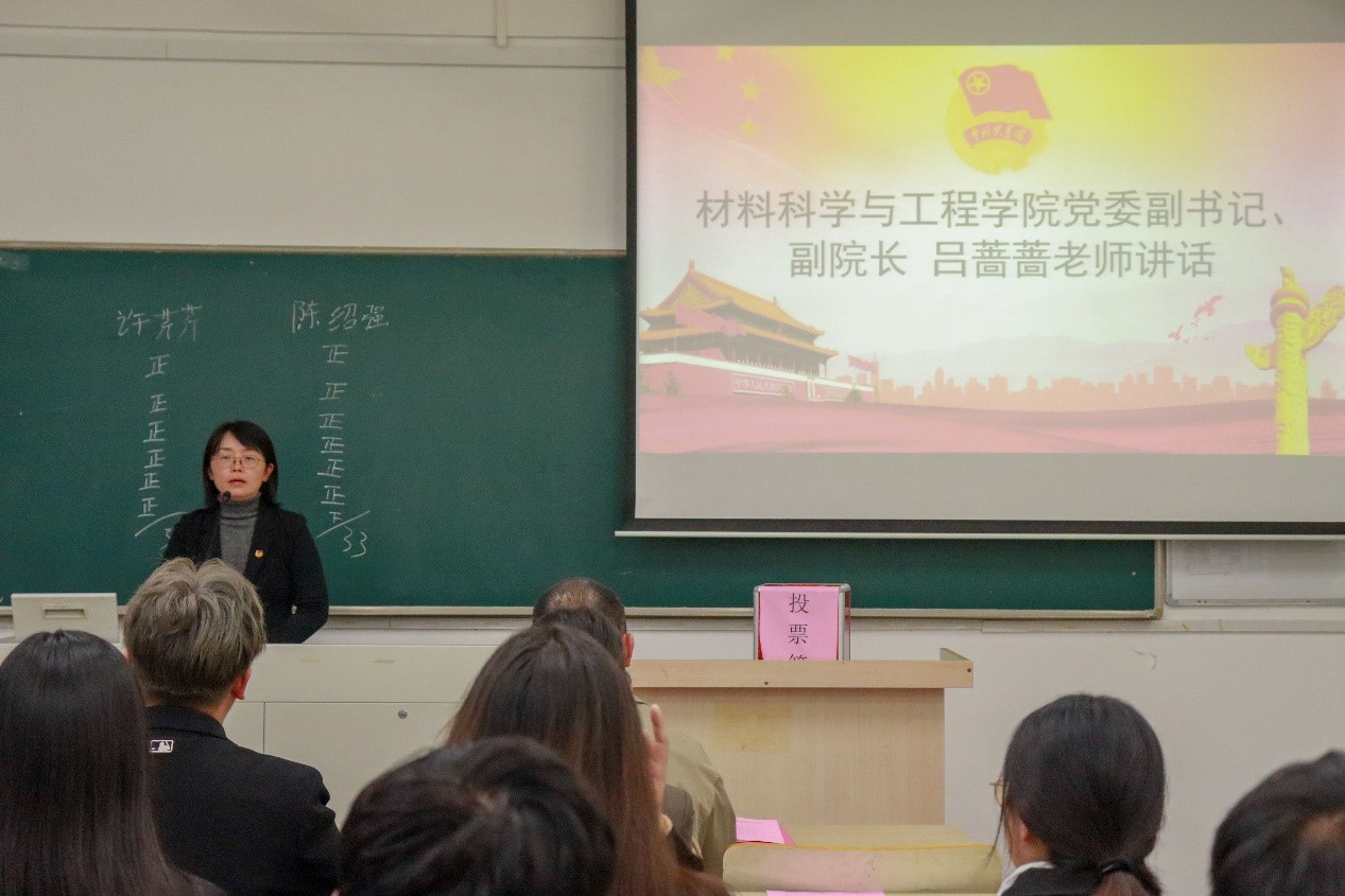 院党委副书记、副院长吕蔷蔷讲话,她希望全体研究生学生代表能锤炼自身品德修为,树立正确的人生观、价值观,以认真负责、公平公正的态度,切实履行学生代表职责,发挥学生干部队伍的凝聚力、战斗力,为学院一流人才方阵的培养和壮大贡献力量。