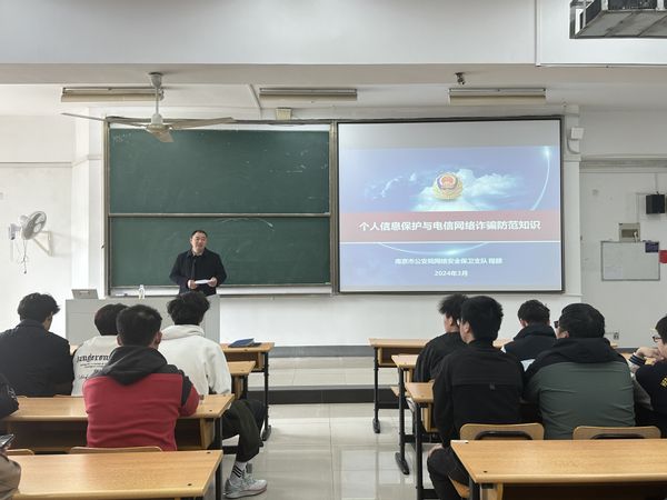大会上,程颐同志首先以棱镜门等经典案例为引,为同学们展现了危机四伏的真实世界,展示了自电信诈骗出现初期至今网络诈骗话术的迭代,从根本阐释了同学们容易受骗的真实原因;接着,程颐同志以风趣幽默的语言,介绍了诸如冒充QQ好友、淘宝刷单诈骗等十大常见骗术,并针对各类骗术为同学们提出了相应的建议,帮助同学们在网络上保护好个人信息;此外,程颐同志还播放了真实案例视频,让同学们从当事人深陷骗术的案例中体悟到了“旁观者清”的真实含义,为同学们敲响了网络安全的警钟。最后高志华书记为大会进行总结,再次强调了日常生活中网络安全的重要性,提醒同学们务必维护好个人信息安全,强调了大会的教育意义。