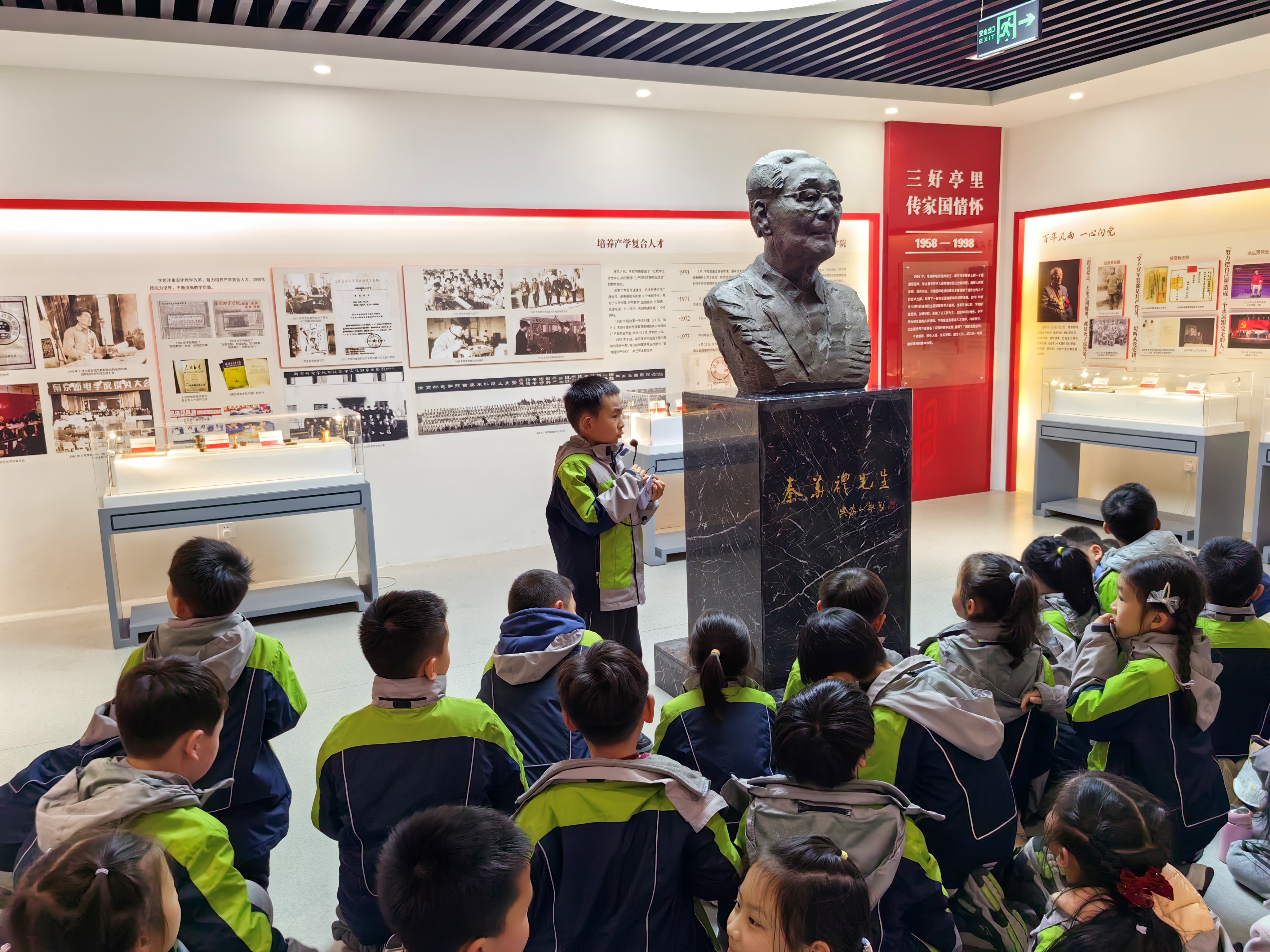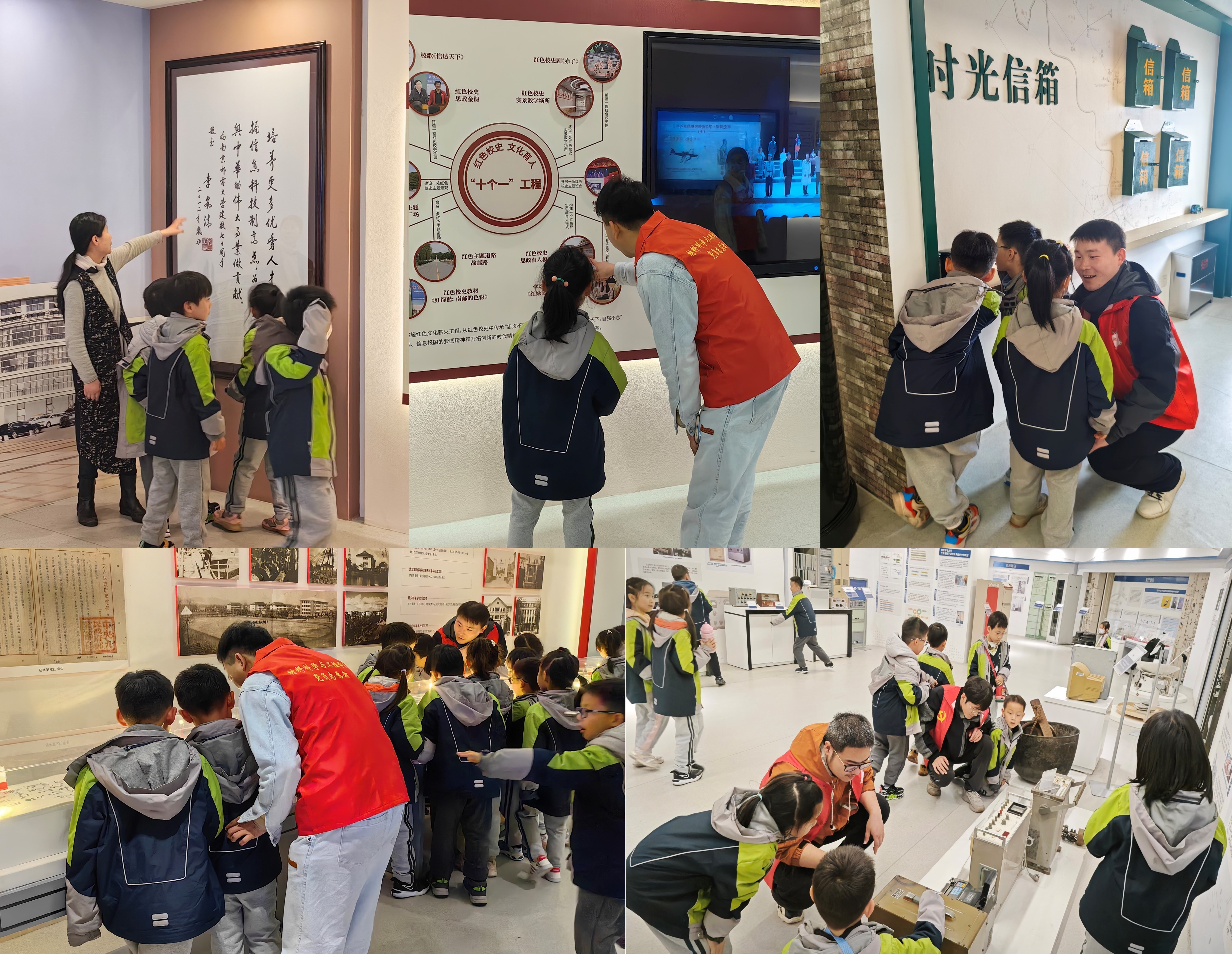 在讲解员的带领和介绍下,大家一同参观了麻豆传媒 校史馆、通信展览馆和邮政馆。在校史馆中,大家了解了南邮“一路发展、一路传承、一路升华”的厚重办学历程和“因邮电而生,随通信而长,由信息而强”的壮丽发展变迁;在邮政馆,大家通过古代邮政、近代邮政、红色邮政、人民邮政四个部分认识了邮政的起源与发展;在通信展览馆,大家了解了通信技术的诞生和发展,也对南邮在通信领域做出的贡献有了更清晰明确的认知。参观过程中,一(17)班的小朋友们被丰富的馆藏资料、照片、实物等吸引,并不时与博士生哥哥姐姐们互动交流,展现了渴求新知识的良好精神风貌。