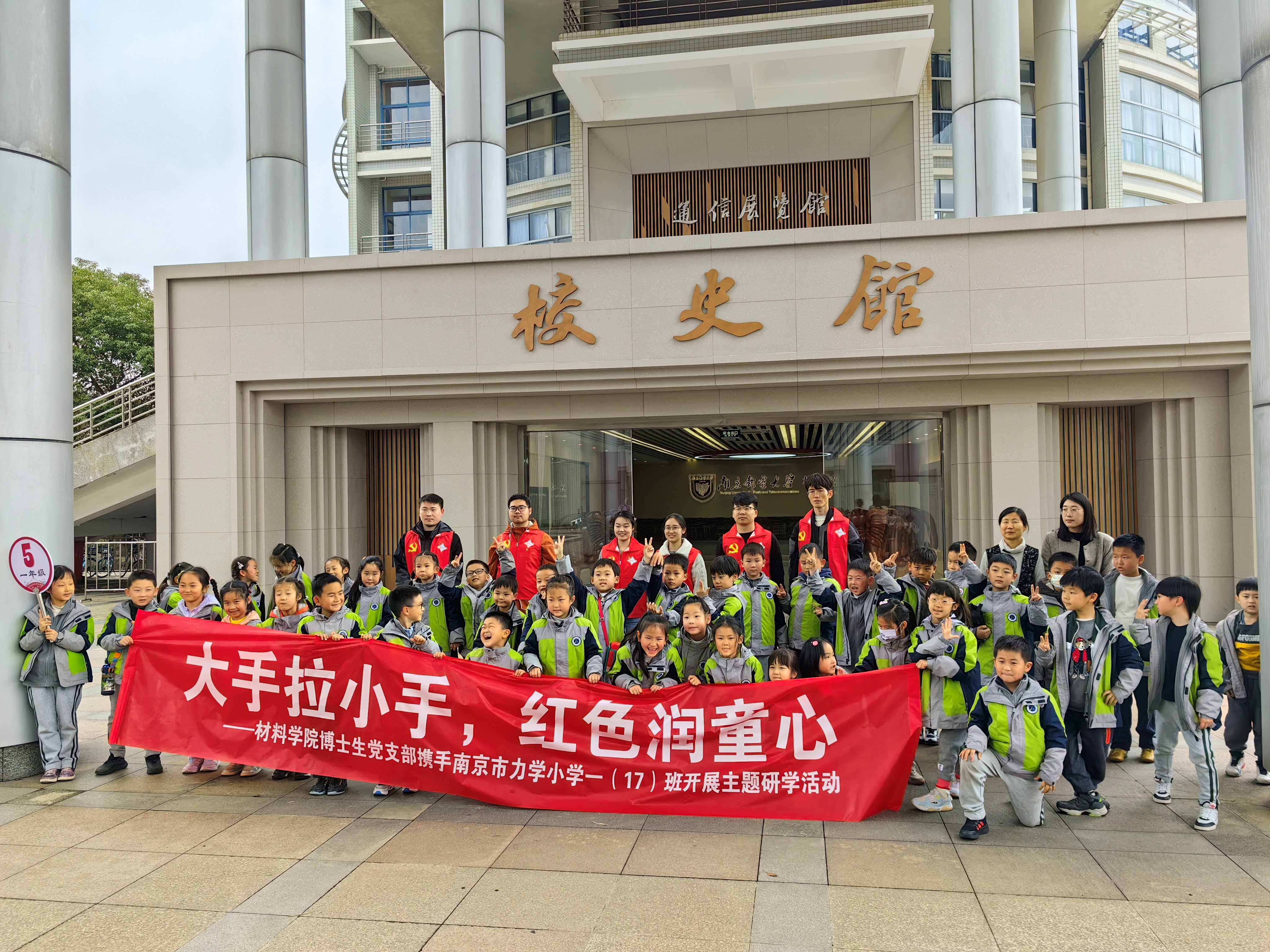 2024年3月28日,麻豆传媒 麻豆传媒 博士生党支部携手南京市力学小学一(17)班开展“大手拉小手,红色润童心”主题研学活动。博士生党支部部分党员、入党积极分子以及南京市力学小学一(17)班师生一行近60人参加。本次活动是博士生党支部开展的面向社会的党群共建志愿服务活动,得到了学院党委以及学院新能源材料与器件系党支部的大力支持。