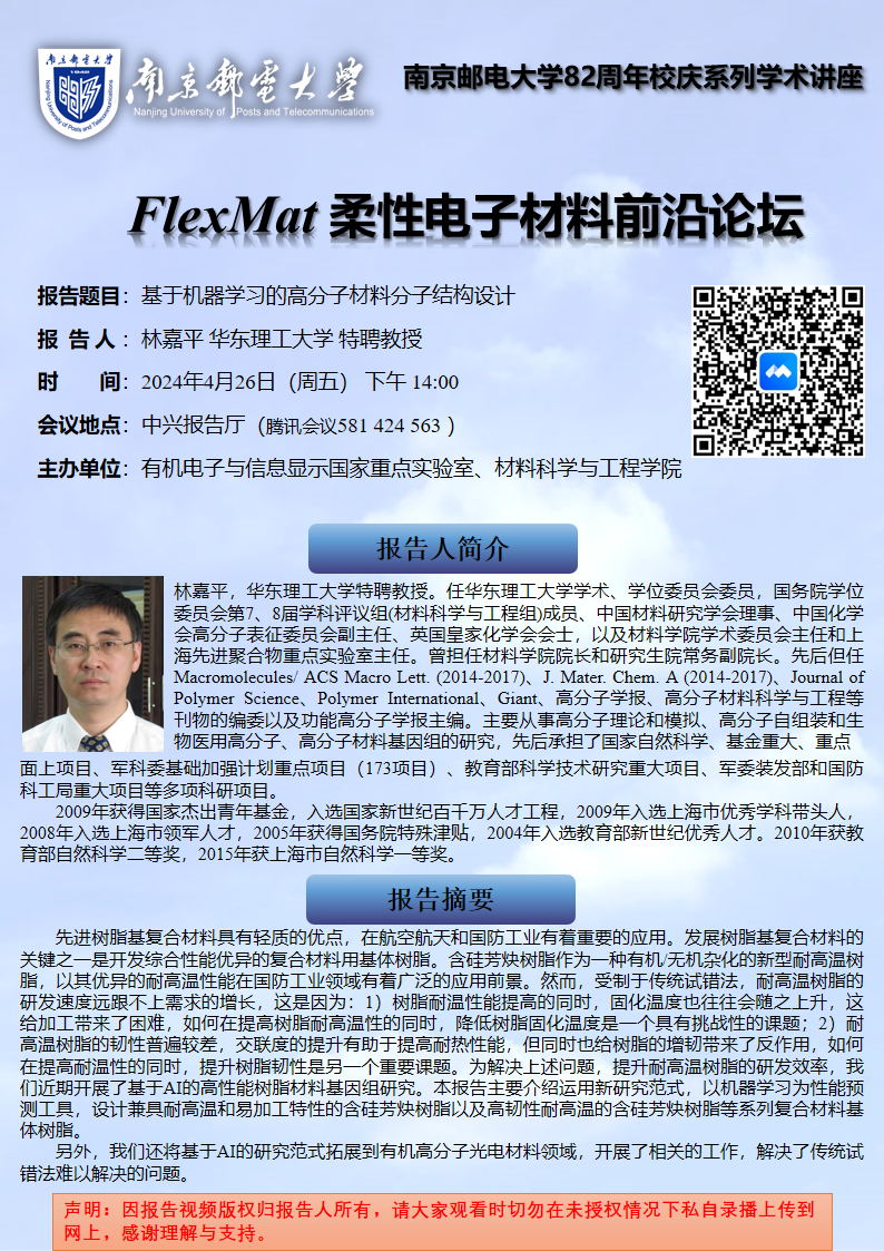 FlexMat柔性电子材料前沿论坛: 华东理工大学特聘教授 林嘉平