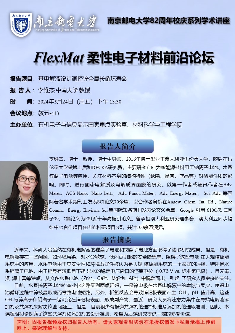 FlexMat柔性电子材料前沿论坛: 中南大学 李维杰教授