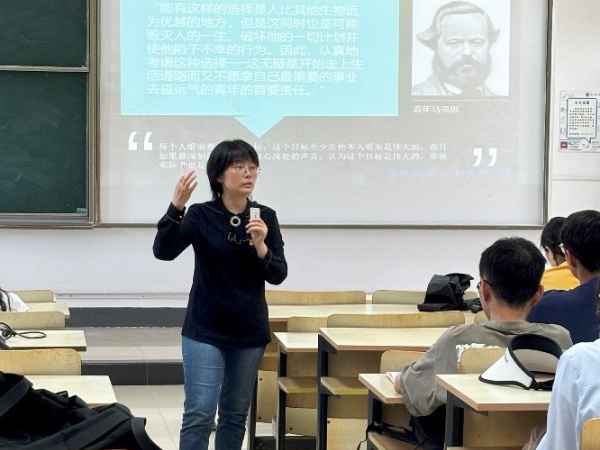 吕蔷蔷老师分享“品读《青年在选择职业时的考虑》”,她指出,每个人的职业选择都应该与自己的兴趣、能力和社会需求相结合,只有这样,才能实现个人价值的最大化,同时为社会的进步做出积极贡献,她号召大家要勇于追求理想,不断探索、学习,成为具有责任感和使命感的新时代青年。
