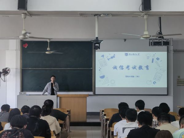 王森老师向学生发出“诚信考试、杜绝作弊”的倡议,要求同学们要认真复习备考,以积极自信的态度迎接考试。并强调了诚信的必要性,同学们要诚实守信,不要抱有侥幸心理,同时签订了诚信考试承诺书。
