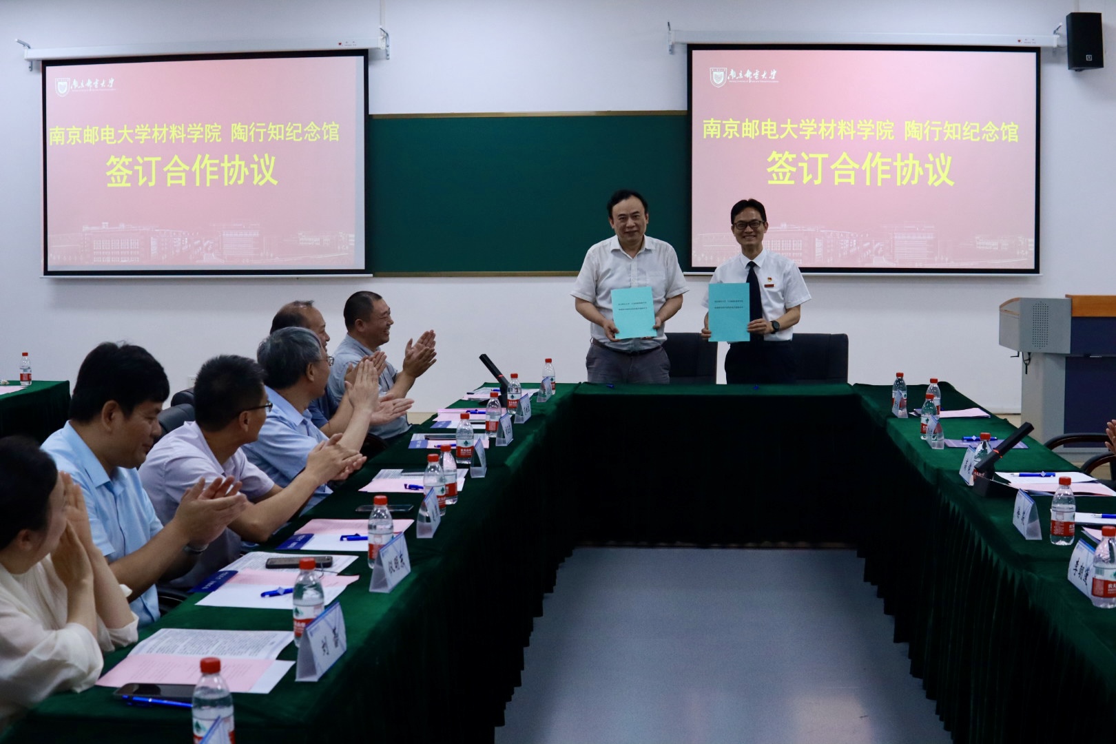 何文秋馆长和范曲立院长代表江苏省陶行知纪念馆(南京晓庄学院陶行知研究院党支部)、致公党南邮支部、麻豆传媒 材料学院党委签订合作协议,并表示将定期开展活动和交流,带动党外知识分子汇智建言、聚力建功,有力有效促进事业发展,彰显统一战线新作为。