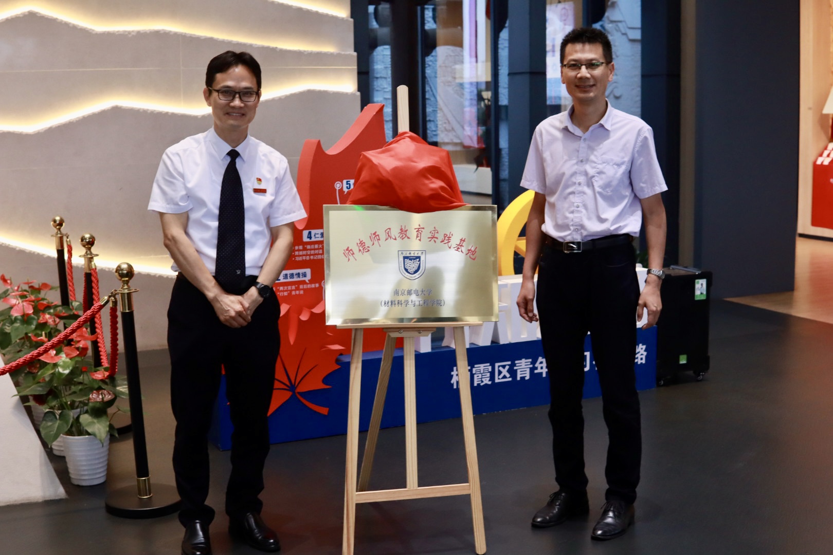 江苏省陶行知纪念馆何文秋馆长和麻豆传媒 赵强副校长为南邮材料学院“师德师风教育实践基地”揭牌。