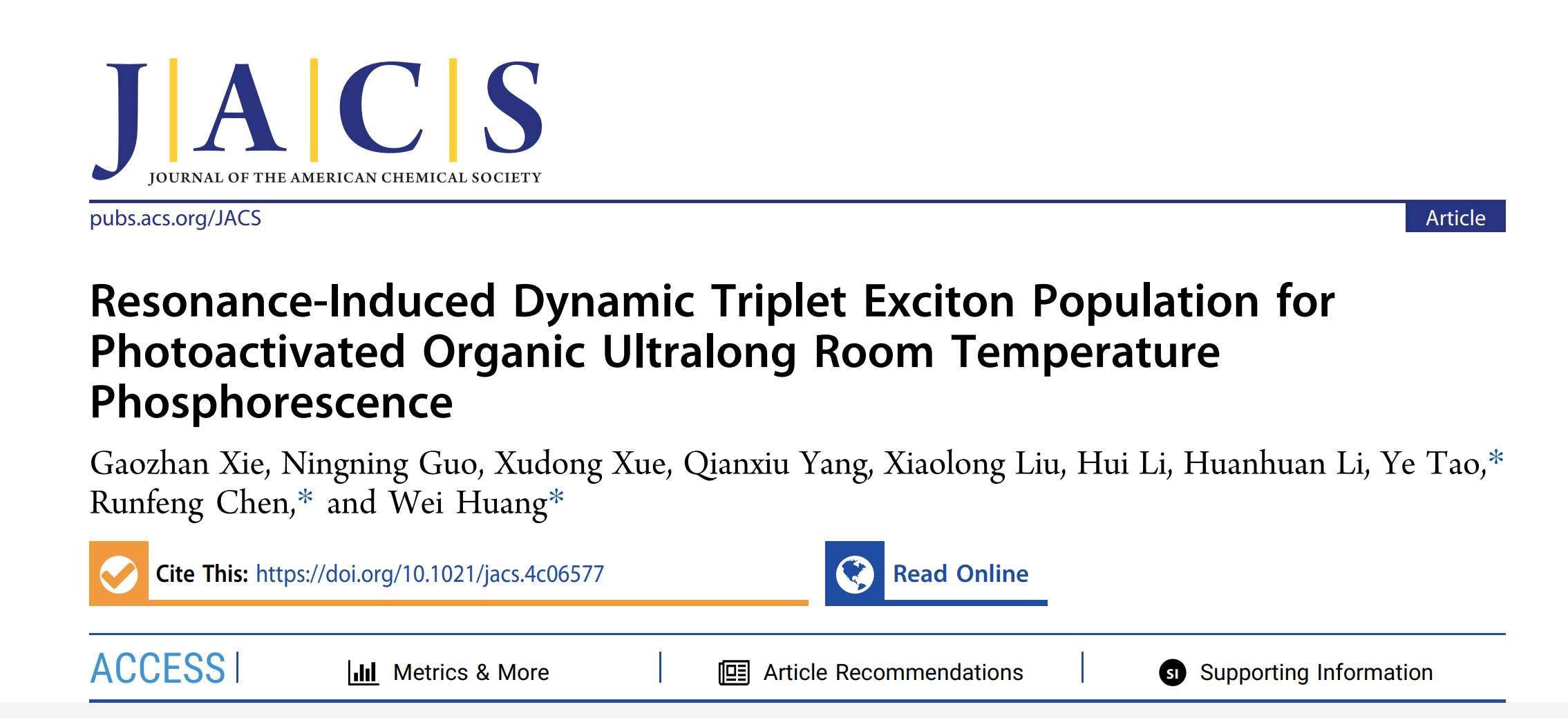 Journal of the American Society:黄维院士团队陶冶和陈润锋教授在有机材料激发态调控领域研究进展