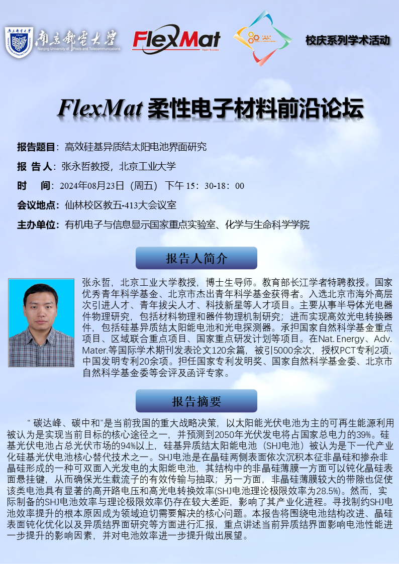 FlexMat柔性电子材料前沿论坛:北京工业大学 张永哲教授