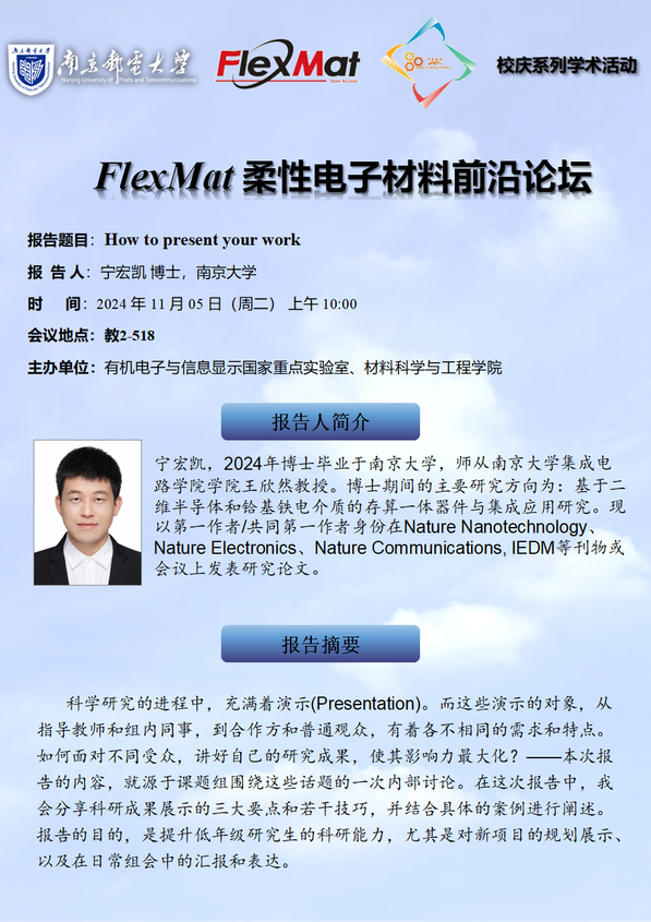 FlexMat柔性电子材料前沿论坛: 南京大学 宁宏凯博士
