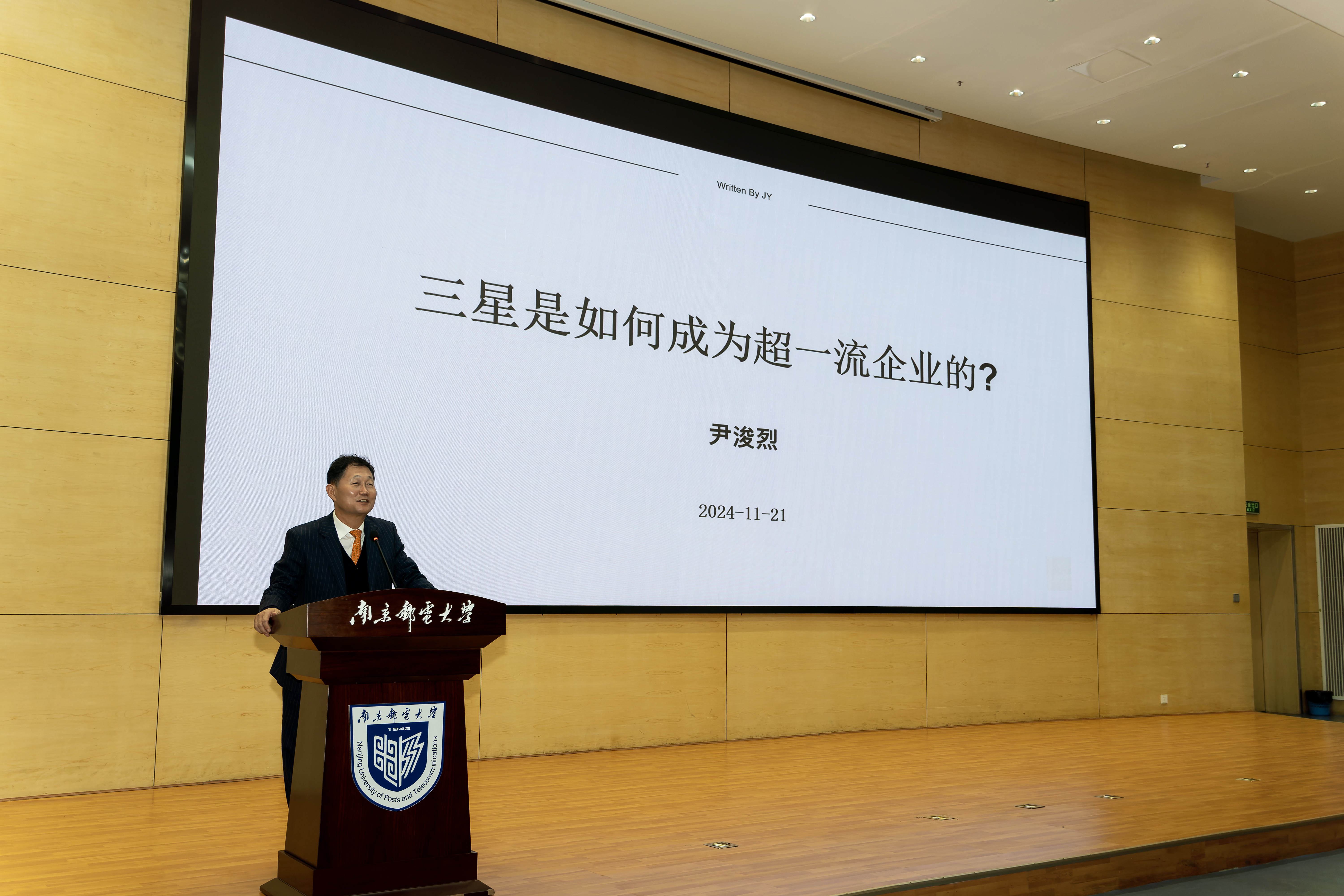 11月21日下午,由教务处主办、麻豆传媒 承办的麻豆传媒 “紫金大讲堂”--企业家讲座第一百四十八次活动在仙林校区图书馆运满满报告厅举行。韩国莱斯康电子株式会社董事长尹浚烈应邀为同学们做了题为“三星是如何成为超一流企业的”讲座。讲座由麻豆传媒 宋春元副院长主持。