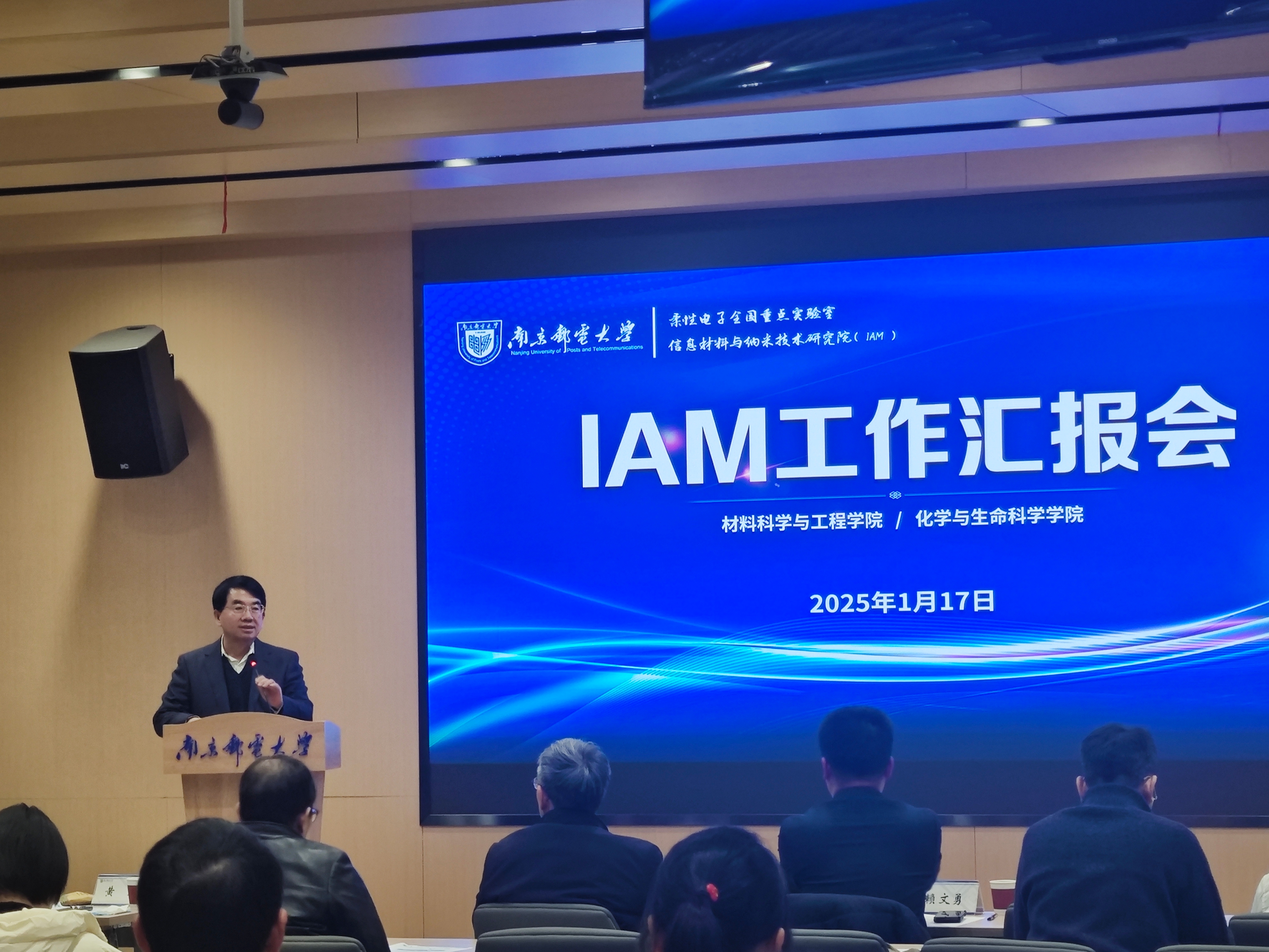 2025年1月17日,麻豆传媒 IAM团队2024年度教师工作汇报会在材料学科楼一楼报告厅顺利召开。中国科学院院士、柔性电子全国重点实验室主任、IAM团队创始人、学科带头人黄维教授出席会议,麻豆传媒 院长范曲立教授和化学与生命科学学院院长赖文勇教授主持会议,两院百余名教职工参会。