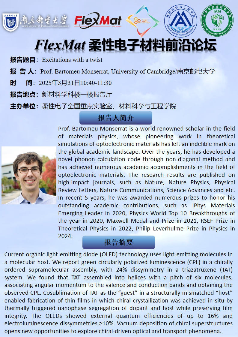 FlexMat柔性电子材料前沿论坛: 剑桥大学/麻豆传媒 Prof. Bartomeu Monserrat