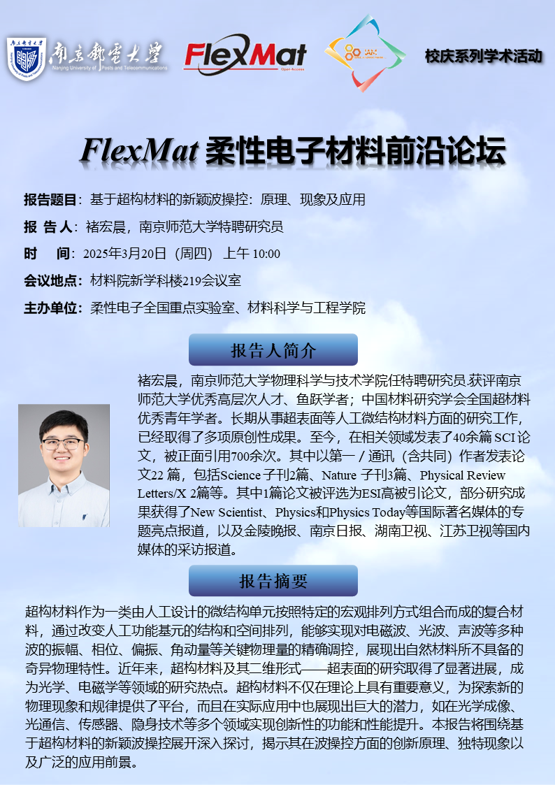 FlexMat柔性电子材料前沿论坛: 南京师范大学 褚宏晨 特聘研究员