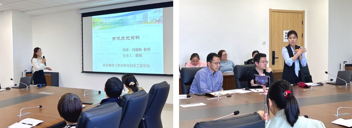 在“新老教师同上一堂课”环节,青年教师、入党积极分子魏娟老师进行现场授课,以《有机发光材料》课程中有机发光材料、发光过程以及发光机制等内容教学进行展示。新教师的授课过程展示了扎实的专业功底,将学科前沿动态与课程思政有机融合,体现了青年教师的责任担当与育人活力。随后,党员教师、导师刘湘梅教授从教学设计、课堂互动、思政融入等角度进行细致点评,提出“以问题为导向激发学生创新思维”“依托团队创新成果实施课程思政教育并调动学习内驱力”等建议,为新教师成长指明方向。