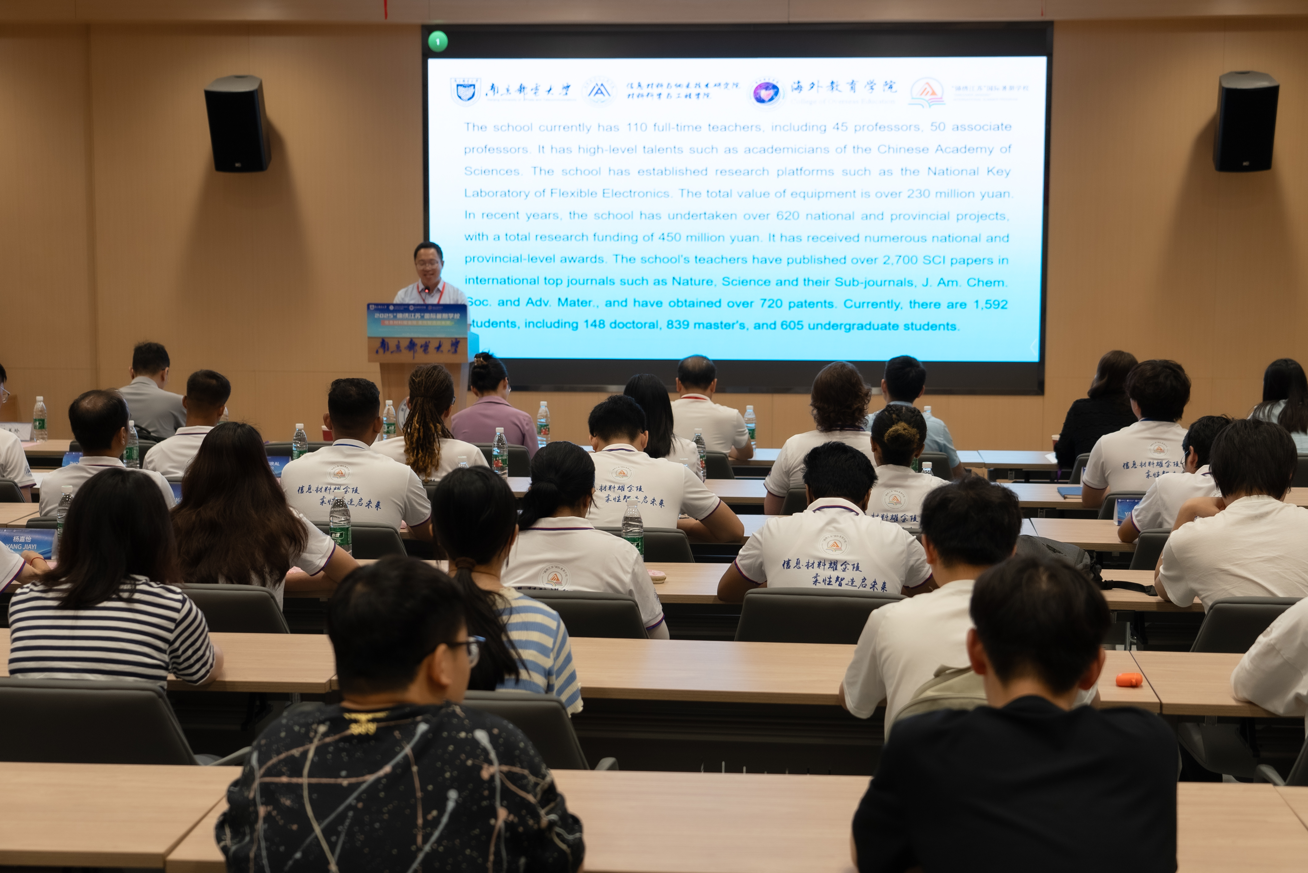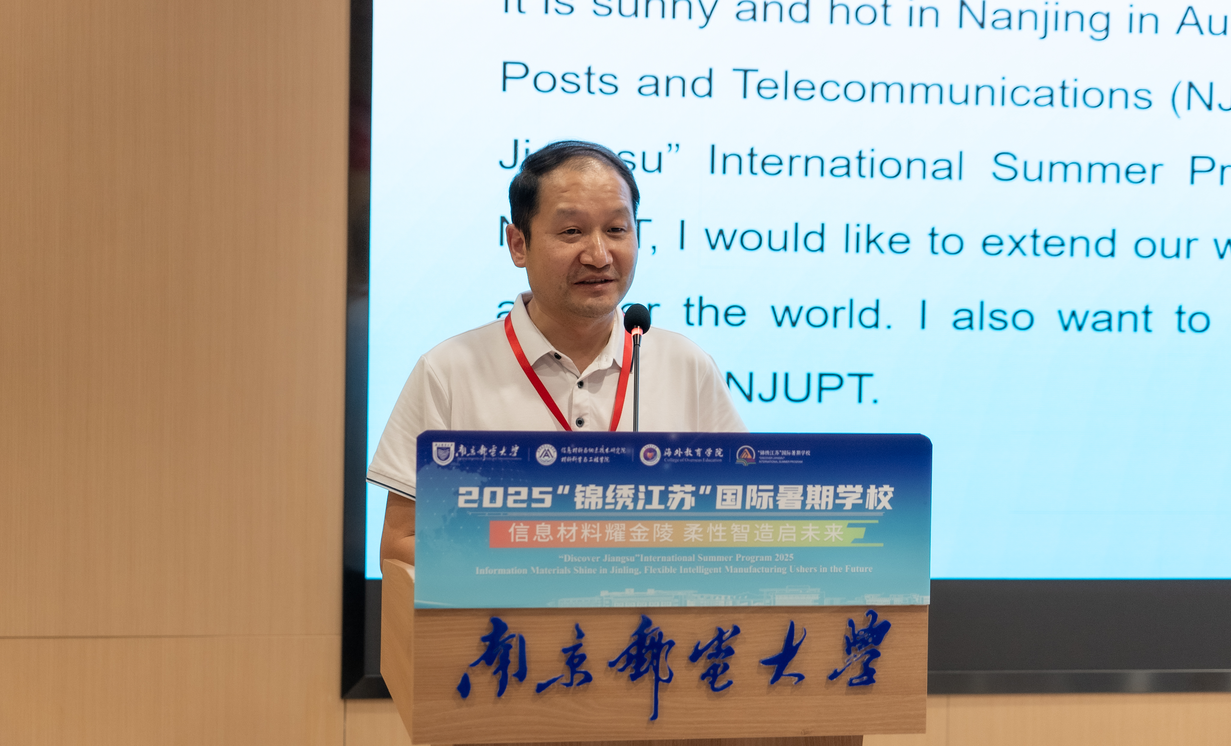 校党委常委、副校长刘青山介绍了南邮电子信息办学特色、学科建设以及国际交流合作情况。他表示,本次国际暑期学校将通过学术讲座、实验实践和文化考察等活动,帮助中外学员深入理解信息材料与柔性电子领域基础知识、前沿发展趋势,拓宽学术视野,为中外青年学者相互交流、学习和分享搭建平台,促进跨文化理解与合作。希望学员们积极参与、广泛交流,提升个人学术水平和综合素养,收获宝贵友谊,建立长久的学术合作关系。