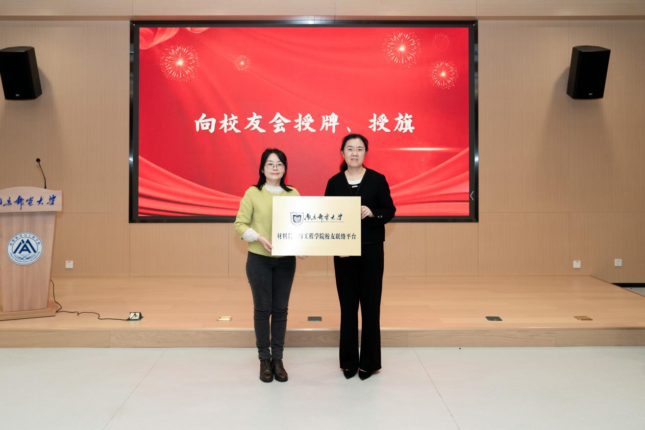 随后,吕蔷蔷做学院第一届校友会筹备工作报告。大会审议通过了学院第一届校友会组织机构人员建议名单。在热烈的掌声中,校院领导共同为校友会授牌、授旗,并向当选的理事们颁发了聘书。