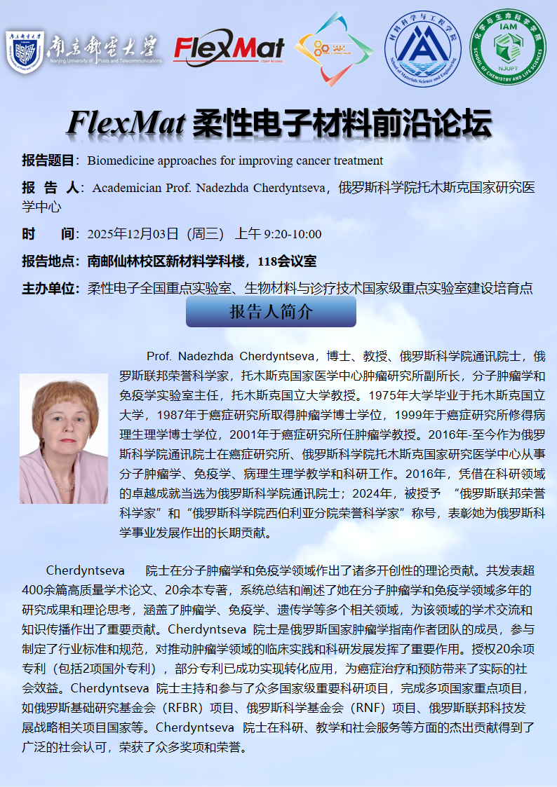 FlexMat柔性电子材料前沿论坛:俄罗斯科学院托木斯克国家研究医学中心 Academician Prof. Nadezhda Cherdyntseva
