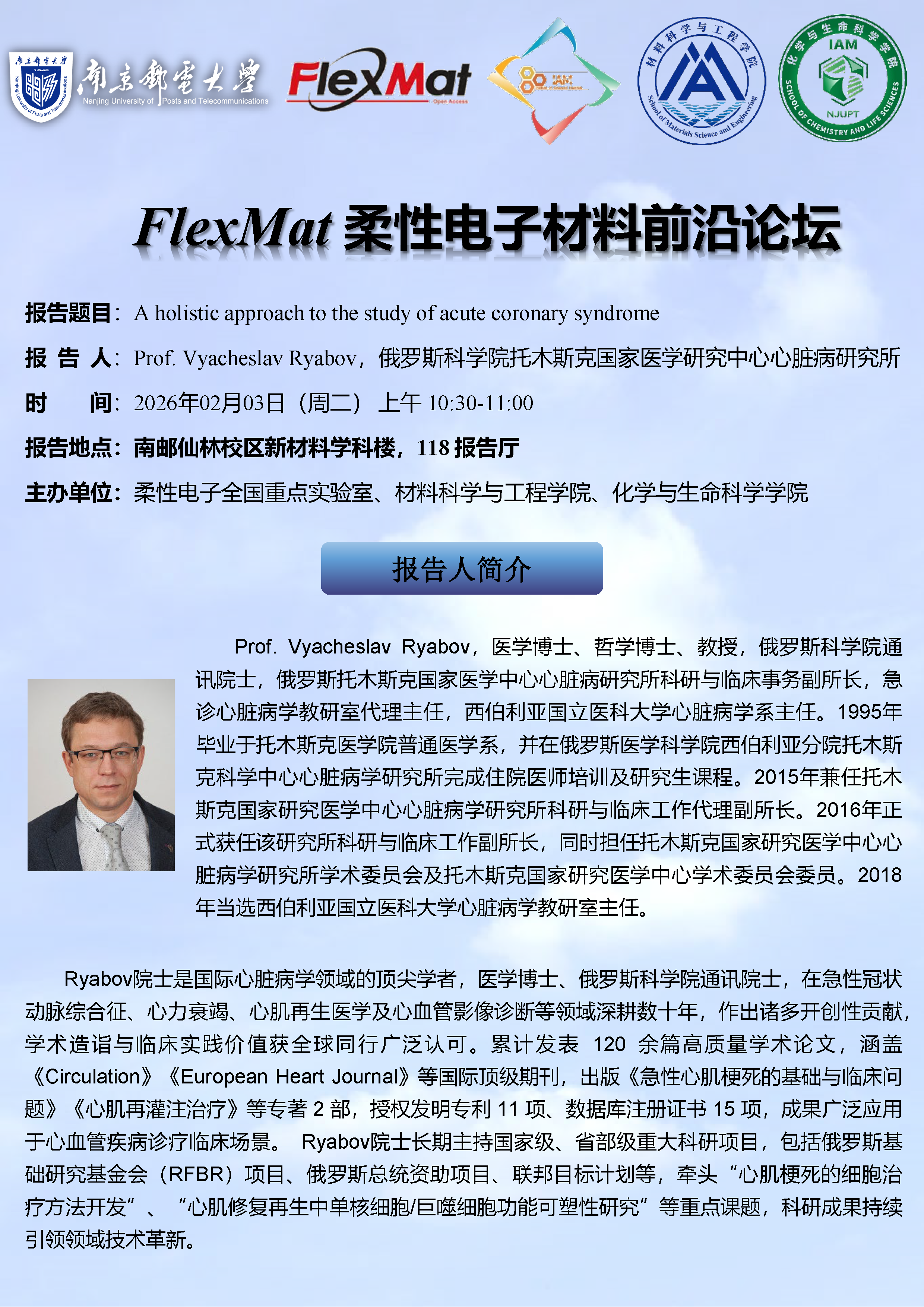 FlexMat柔性电子材料前沿论坛:托木斯克国家医学研究中心心脏病研究所Vyacheslav Ryabov院士
